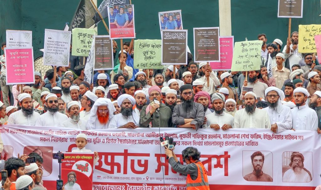 জামিনে বৈষম্য বন্ধ, গুম ও বেআইনি আটক বন্ধ এবং নিরীহ মজলুমদের দ্রুত মুক্তির দাবিতে আমরা ঐক্যবদ্ধ।